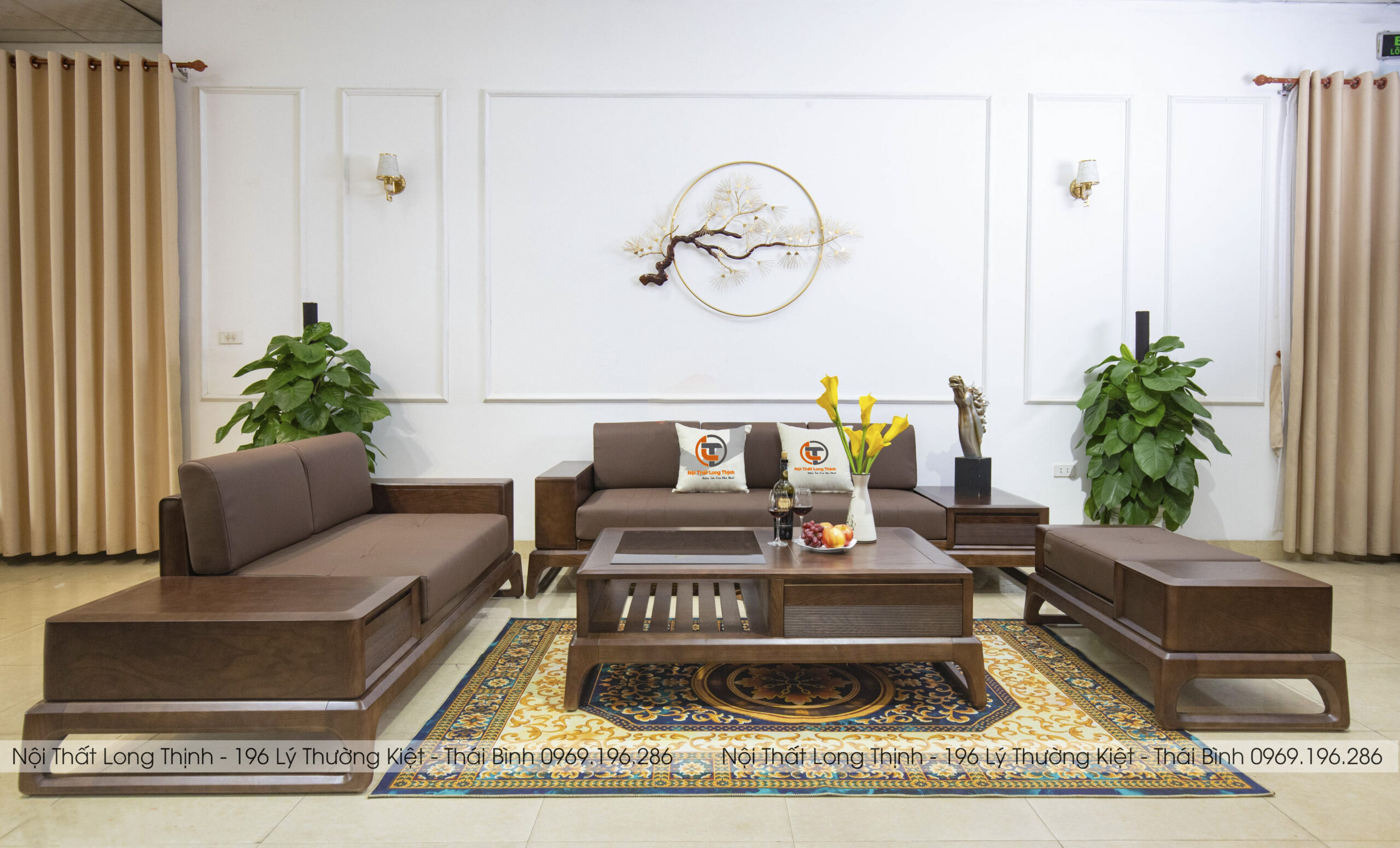 Nội thất Long Thịnh luôn cập nhật những xu hướng đang được ưa chuộng về cả màu sắc lẫn kiểu dáng trên thị trường nội thất với mục đích mang đến trải nghiệm đẳng cấp và thư giãn tối đa cho quý khách. Bộ sofa gỗ sồi là sự biểu tượng cho nét đẹp tinh tế và sang trọng với tone màu nâu sẫm tạo nên điểm nhấn thu hút cho không gian phòng khách gia chủ.